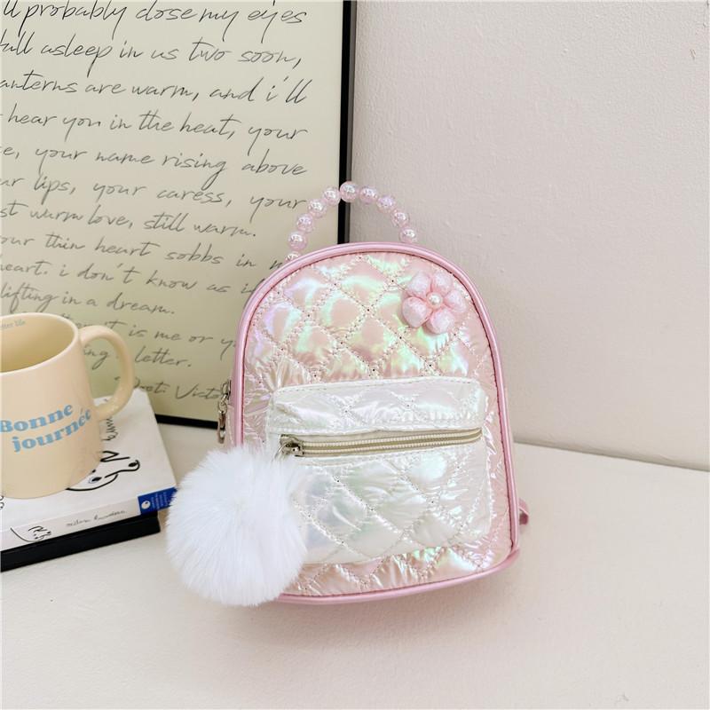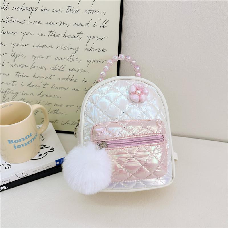 Gradient Backpack Kids With Pearl Handheld Plush Ball And Decoration Flower
