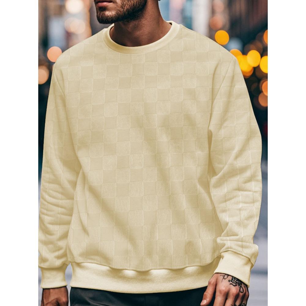 Модный мужской свитшот с длинными рукавами и круглым вырезом, свободного кроя, с клетчатой вышивкой терри