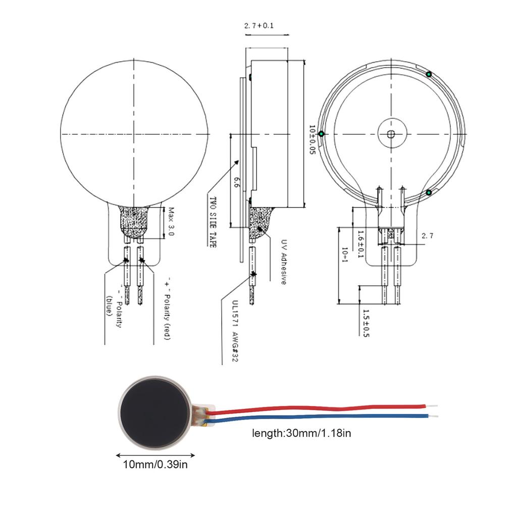 Мини-вибратор 10 мм x 2,7 мм DC3V 12000 об/мин Плоский Монетный Кнопочный Микровибрационный Двигатель постоянного тока Для Проектов Ремонт Электронных Устройств / Одноплатных Компьютеров