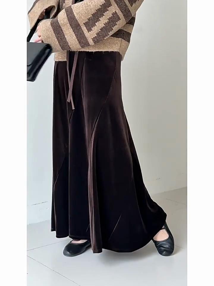 Johnature Korean-style Velvet Pleated Skirt Women Autumn Casual All Match Loose High-waist Long Skirts — купить товар онлайн с бесплатной доставкой по всему миру!