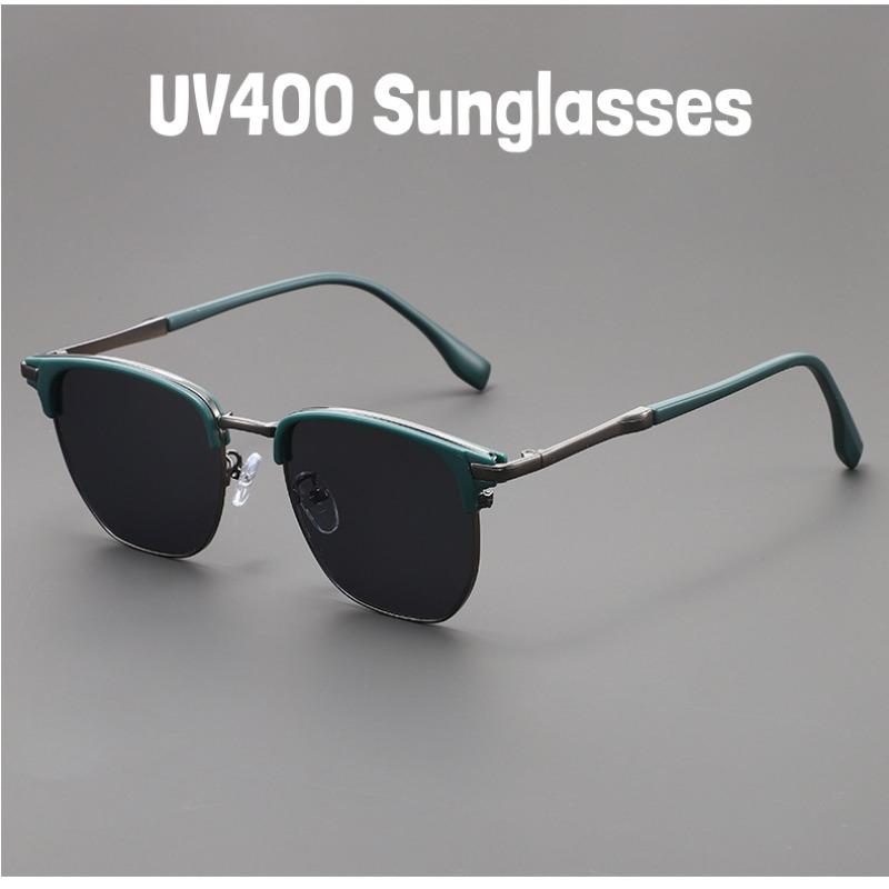 Ретро Роскошные Металлические Полуободковые Солнцезащитные Очки Мужские Модные Квадратные Рамки Водительские Солнцезащитные Очки Уличные UV400 Солнцезащитные Очки Защита Глаз