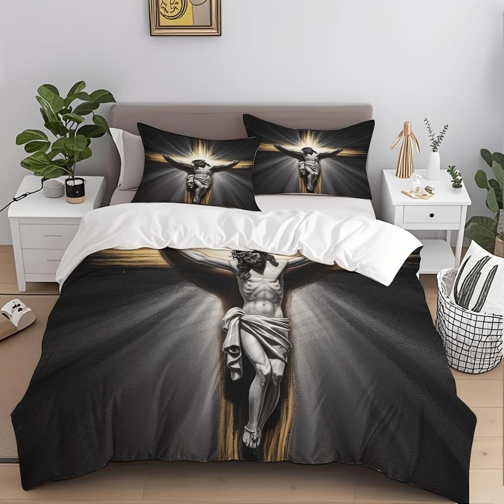 Комплект постельного белья с принтом креста Иисуса, 3 предмета, дышащий и мягкий для всех сезонов, прочный и износостойкий полиэстер, высокое качество