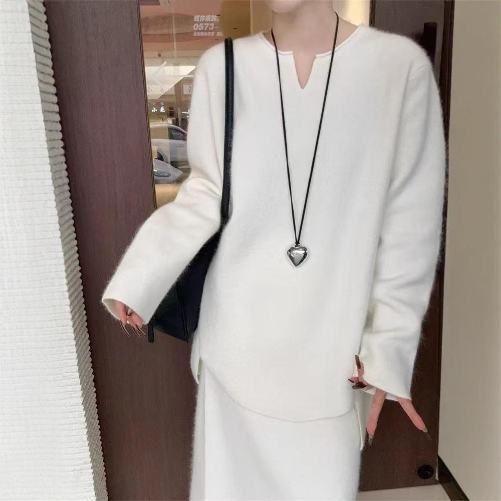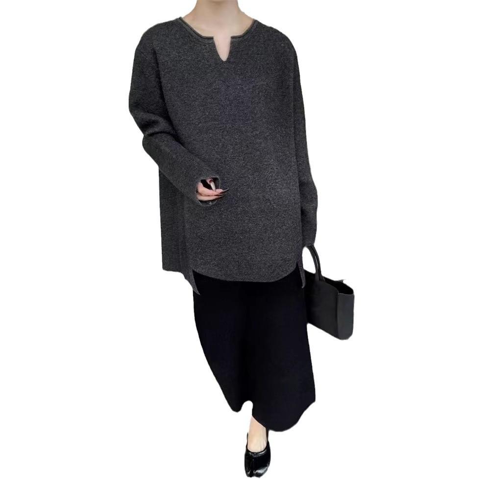 Новый свободный и модный вязаный свитер для женщин с пуловером, воротником-ножницами, непринужденным стилем и неровным подолом