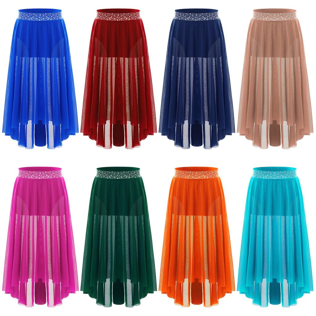 Юбка для лирического танца для девочек с блестящим поясом из стразов, сетчатая юбка хай-лоу, боковой разрез, современный — купить товар онлайн с бесплатной доставкой по всему миру!