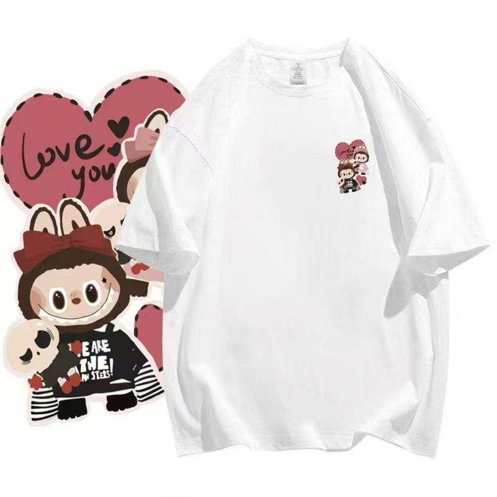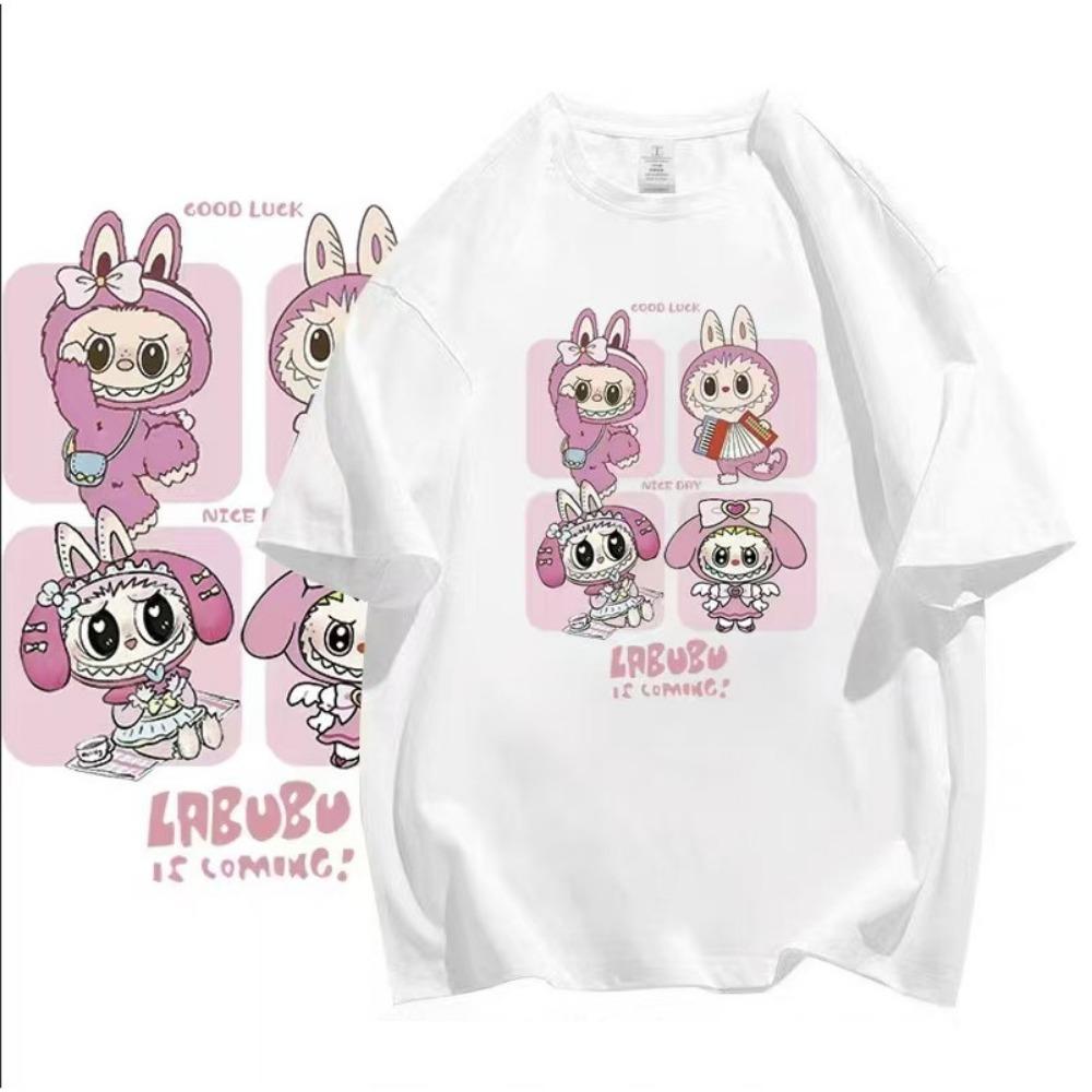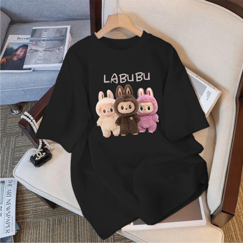 Футболка с коротким рукавом Labubu, подходит для повседневной носки. дизайн в корейском стиле. Мультяшные узоры и свободный стиль