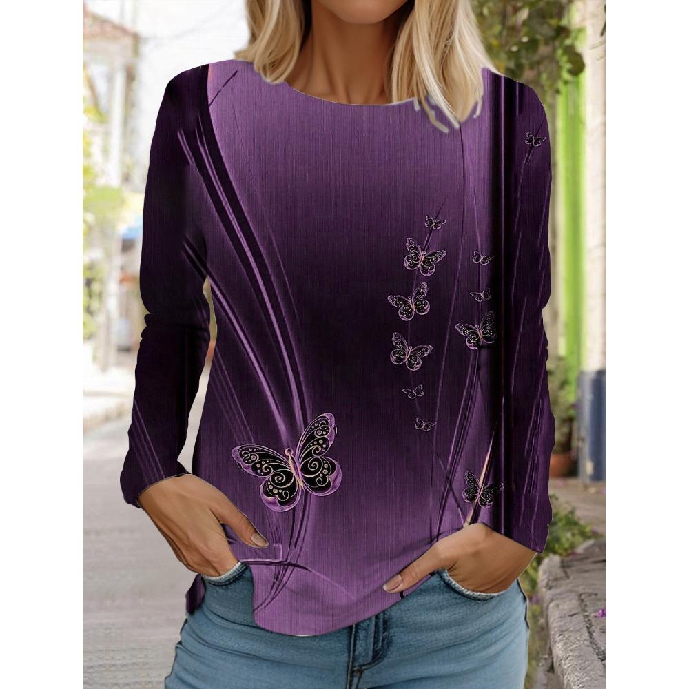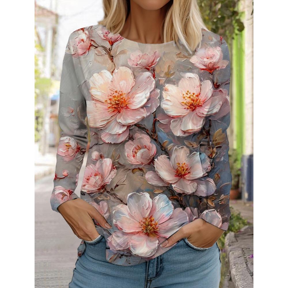 Женская футболка с 3D-принтом в виде цветов, модный топ с длинным рукавом и круглым вырезом, обычного кроя, праздничный наряд выходного дня синего цвета, весна-осень