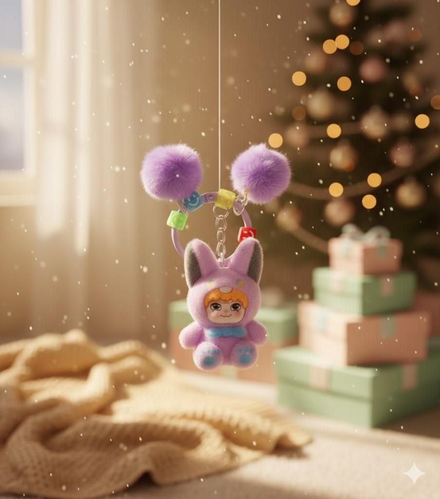 Встречайте Брелок Вакуку (Wakuku) – самый нежный и очаровательный аксессуар в стильном сиреневом цвете! Этот брелок выполнен в виде игрушки – милого ребенка, одетого в сиреневый костюм кролика с серыми ушками.