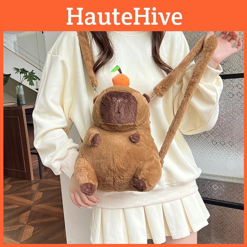 Этот плюшевый рюкзак изготовлен из мягкого полиэстера и выполнен в форме капибары, сочетая в себе прочность и игривый дизайн.. Размером 24*17*31 см, он вмещает ноутбук до 10 дюймов и предлагает вместимость. Идеально для повседневного использования, подходит для неформальных прогулок и школьных мероприятий. Протирать влажной тканью для легкого ухода.