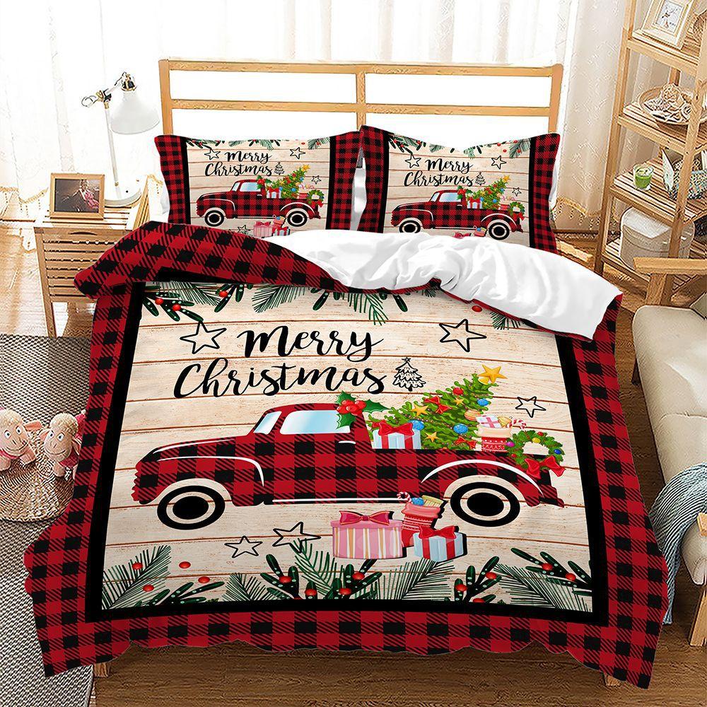 Navidad Plaid Merry Christmas Tree Пододеяльник Twin King Festival Santa Deer Комплект постельного белья из полиэстера Одеяло для взрослых Домашний декор