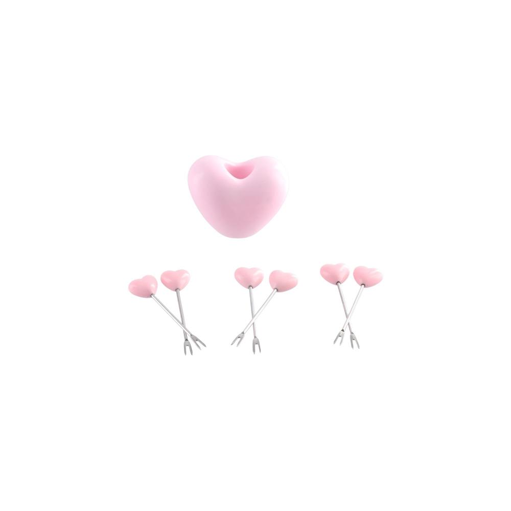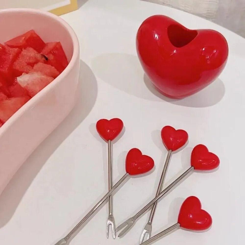 Loving Heart Love Fruit Fork Set Red Pink Plastic Fork Cute Dessert Cake Fork Household