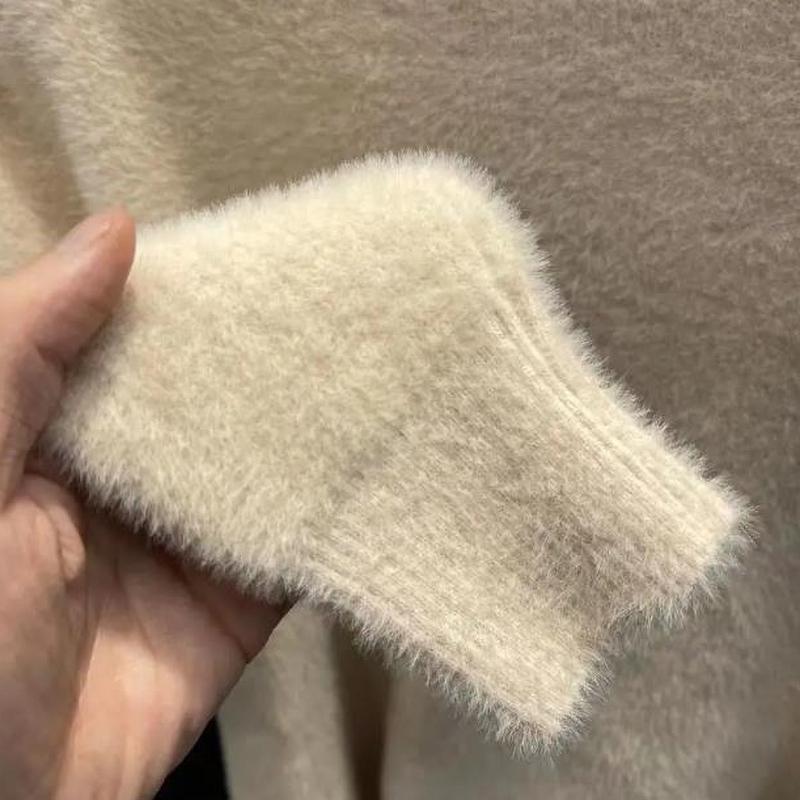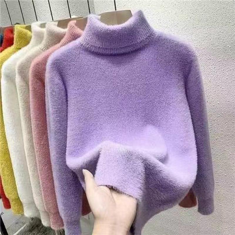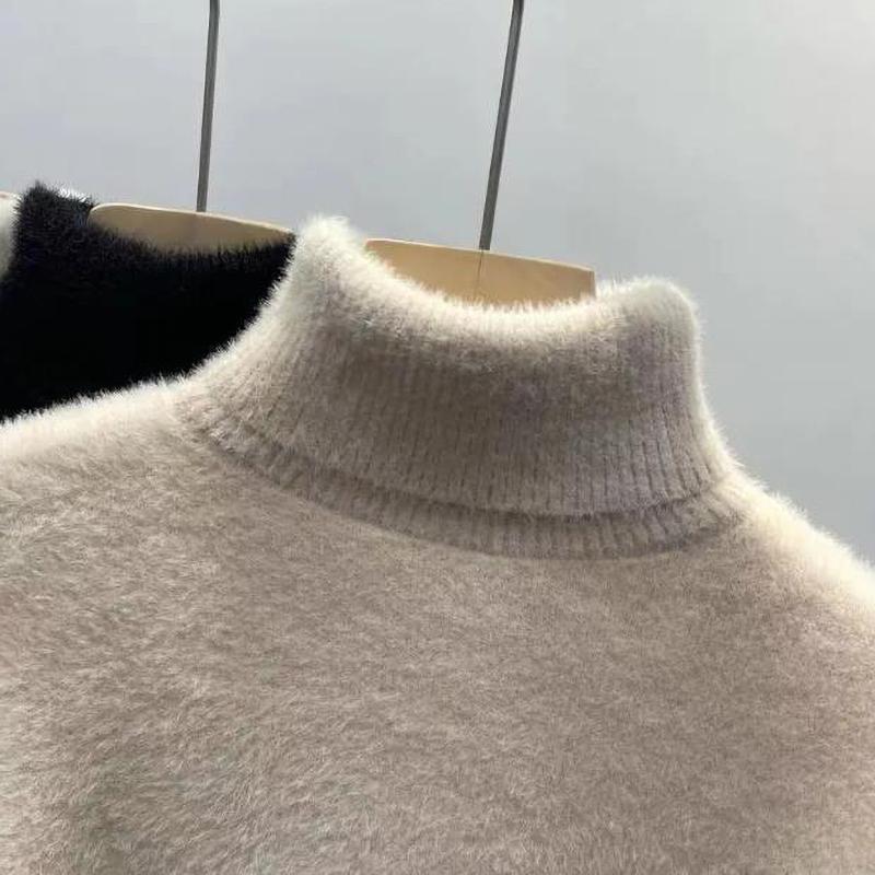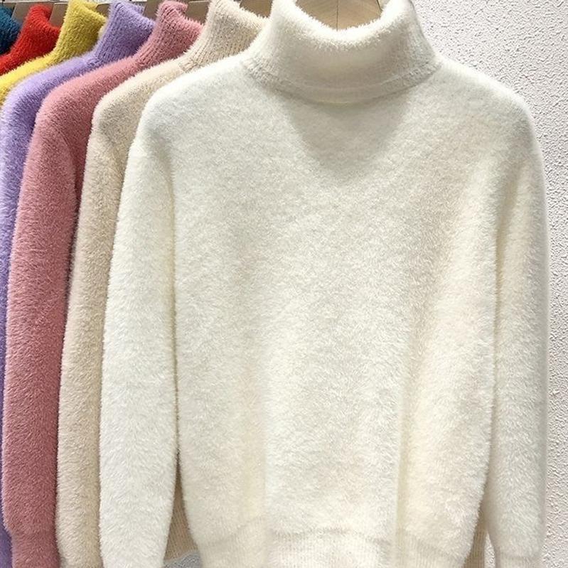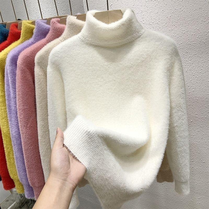 Женский свитер с высоким воротником, из искусственной норки, однотонный, плюшевый, утолщенный, теплый, базовый трикотаж, термопуловеры