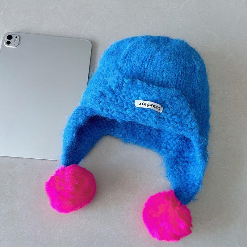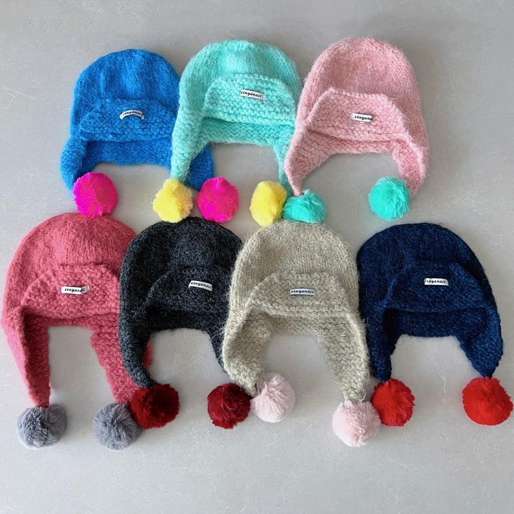 Красочная шерстяная шапка-колпак из вязаной шерсти для женщин, чтобы согреться осенью и зимой, корейский стиль, защита ушей, шапка-ушанка, которая выглядит меньше