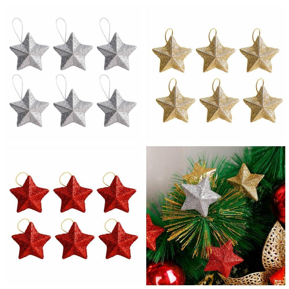 6Pcs/set Five-pointed Star Pentagram Christmas Pendant Glitter Glitter Christmas Pendant Festive — купить товар онлайн с бесплатной доставкой до всему миру!