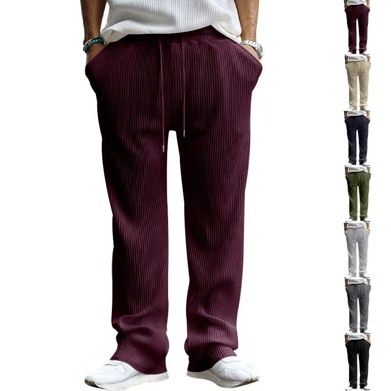 Весенне-осенние мужские повседневные длинные брюки премиум-класса свободного прямого кроя, носить полосатые брюки с высокой талией и широкими штанинами