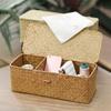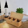 Rectangular 3 Grid Handwoven Storage Basket Dustproof Rattan Divider Storage Box Wardrobe