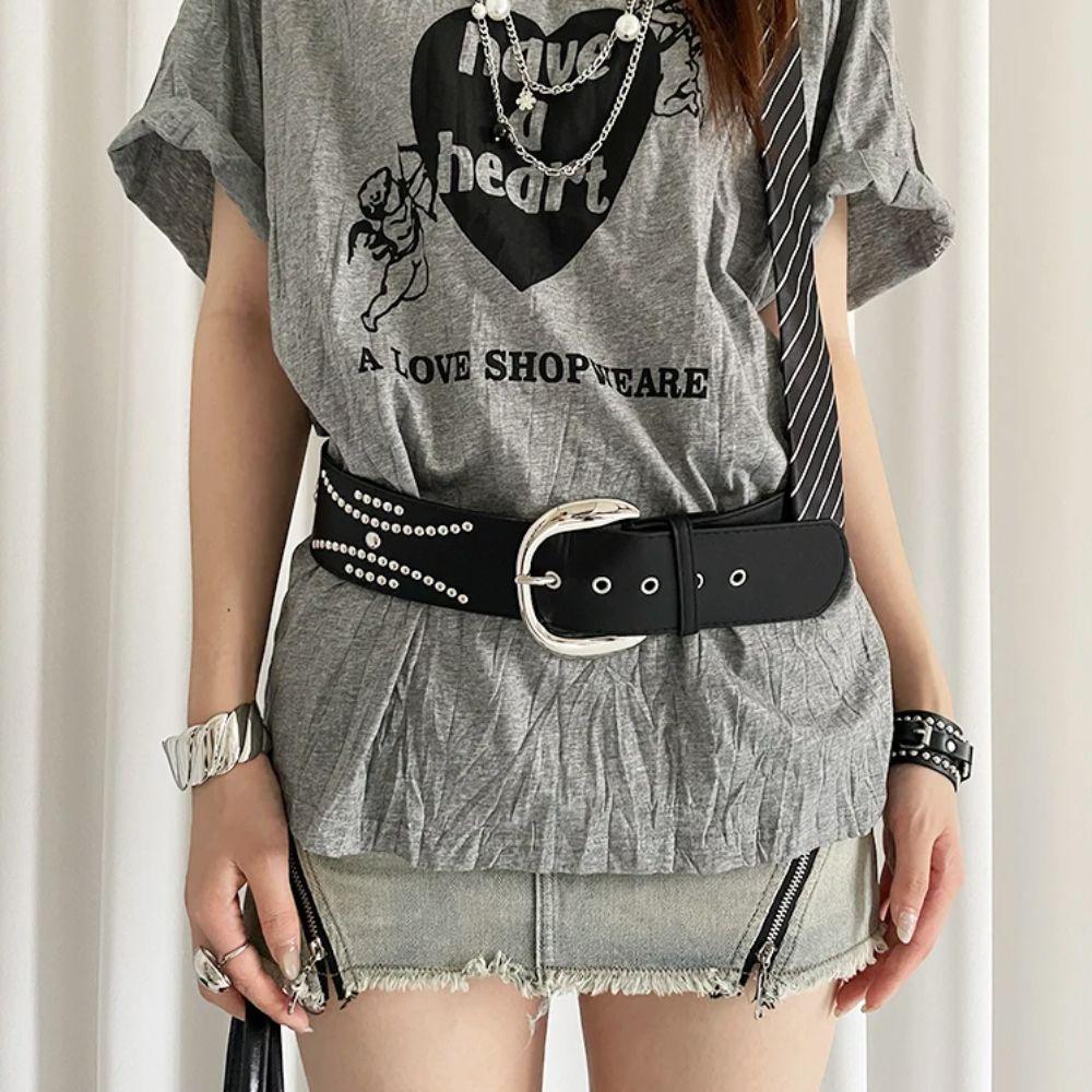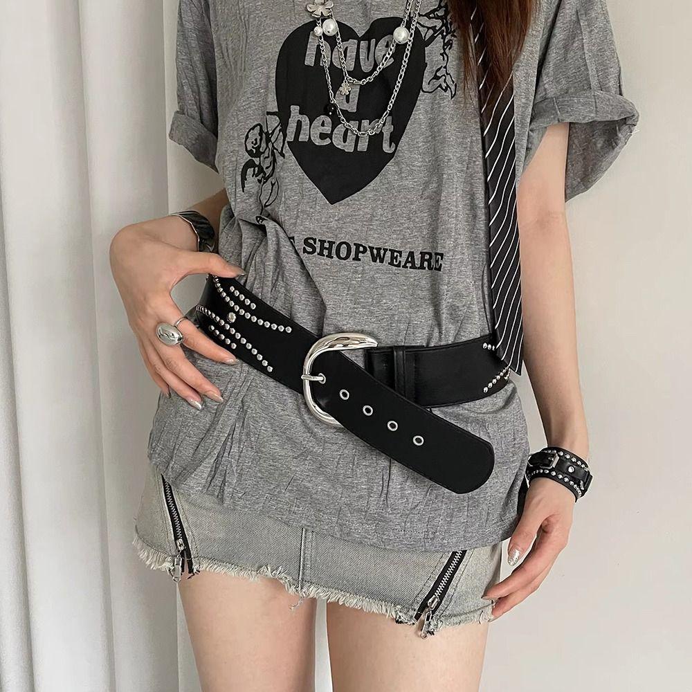 Готический женский пояс на талию Y2k платье джинсовый ремень универсальный ремень с заклепками широкий ремень аксессуар для юбки