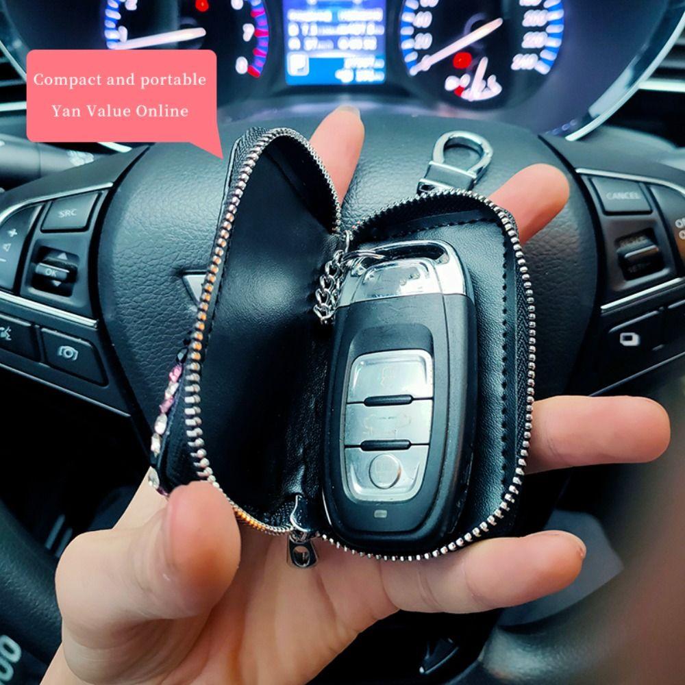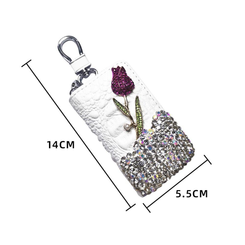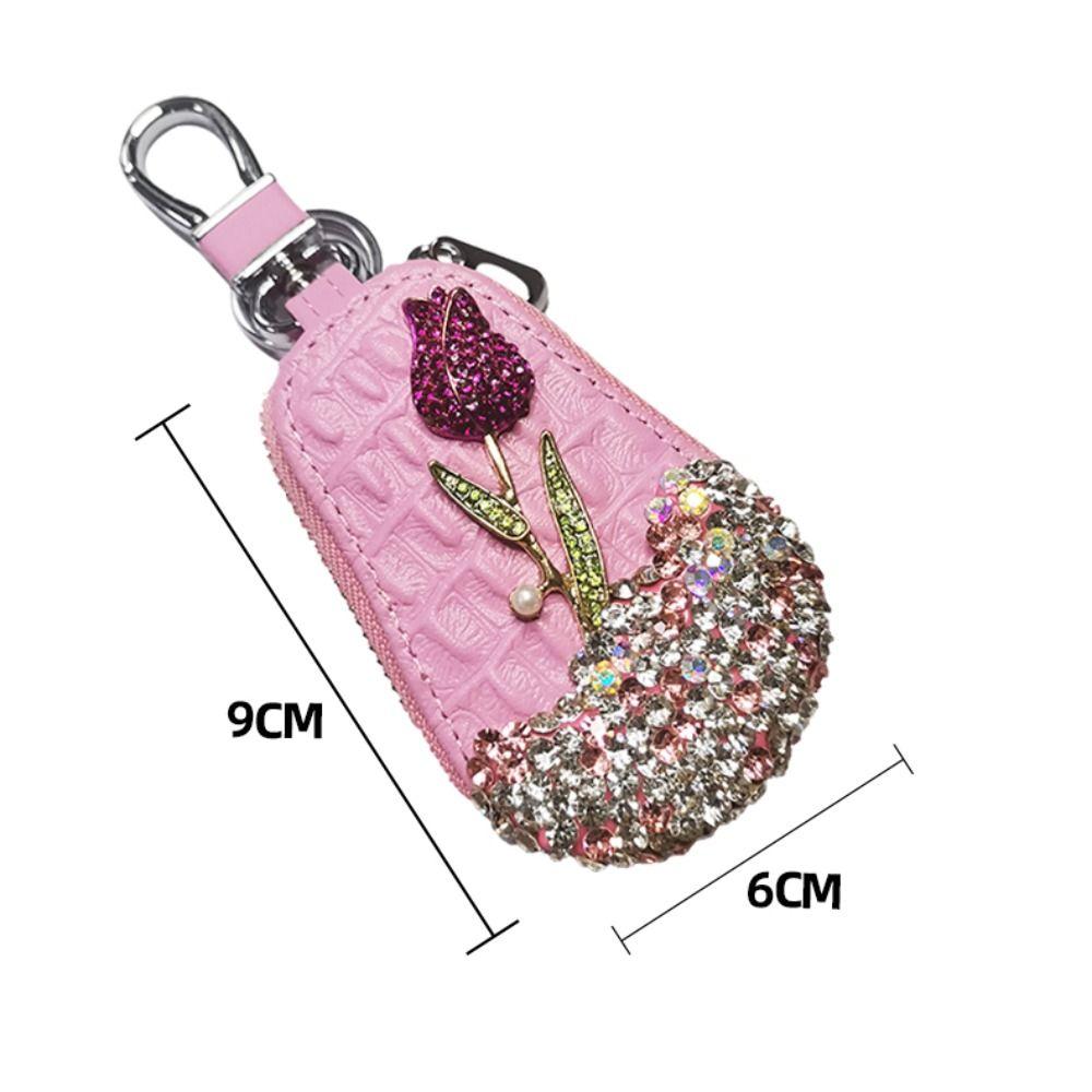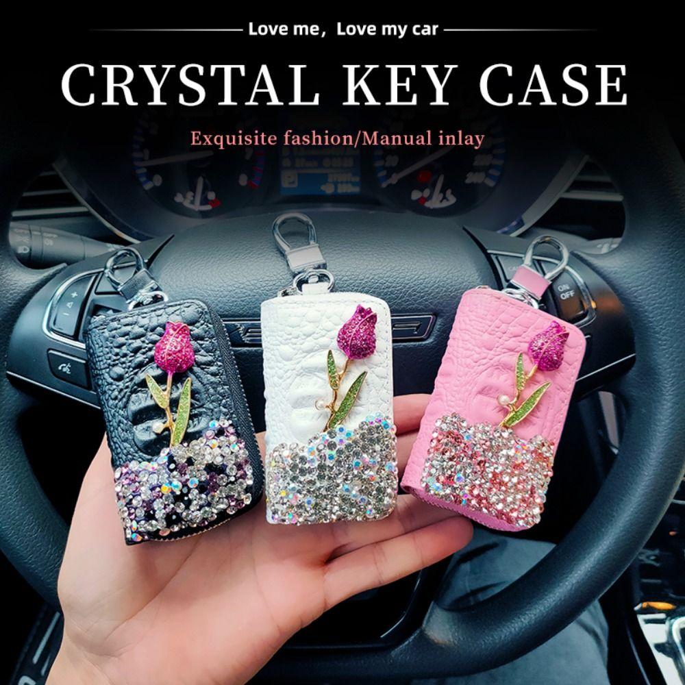 Flower Flower Remote Key Bag Leather Crystal Keychains Key Cover Car Accessories