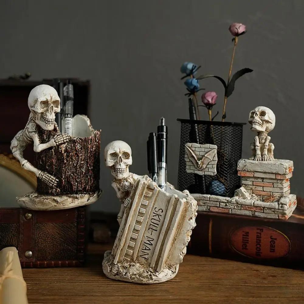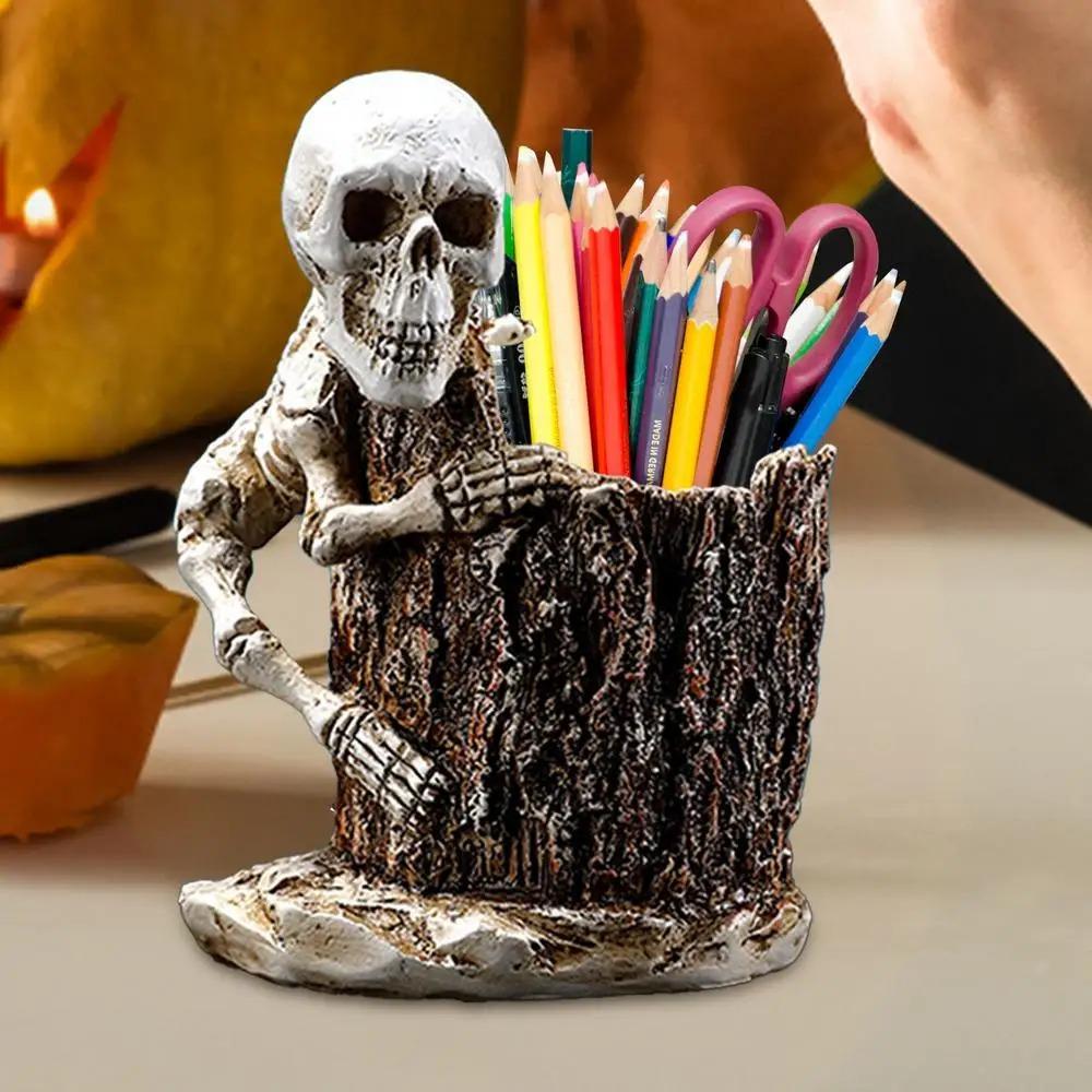 Resin Crafts Skulls Pencil Storage Bucket Funny Skeleton Toothbrush Holder Ghost Festival