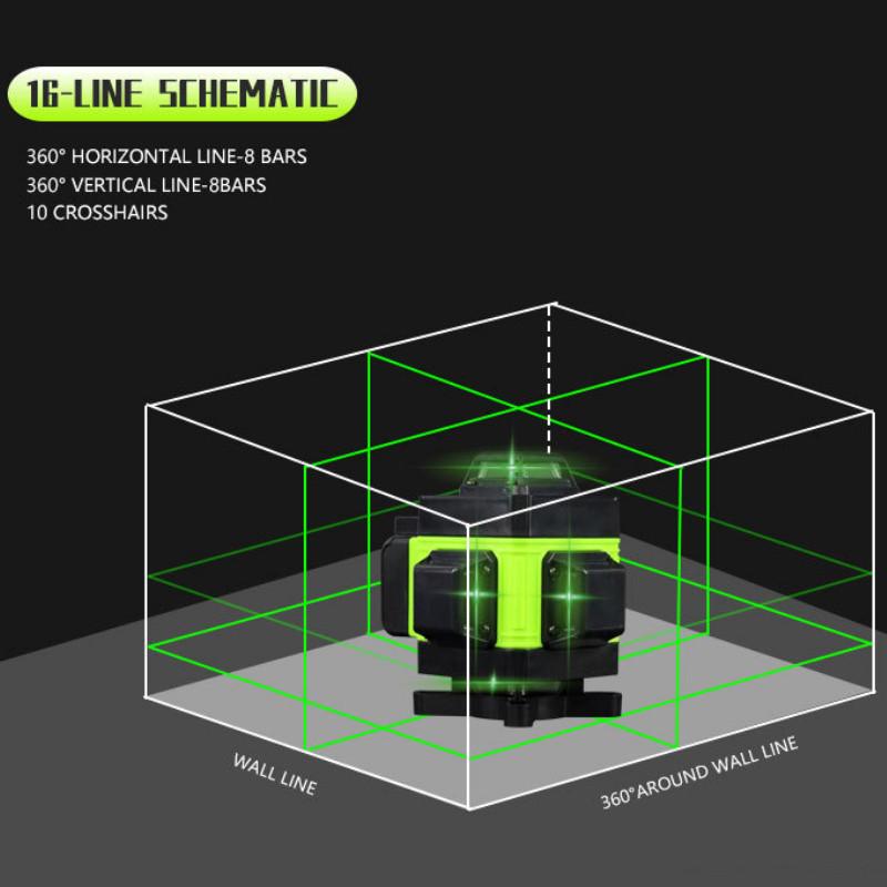 8/12/16 Линий Зеленый Свет Высокоточный Лазерный Уровень 360° Горизонтальный Вертикальный Перекрестный Измерительный Инструмент Автоматический Нивелир