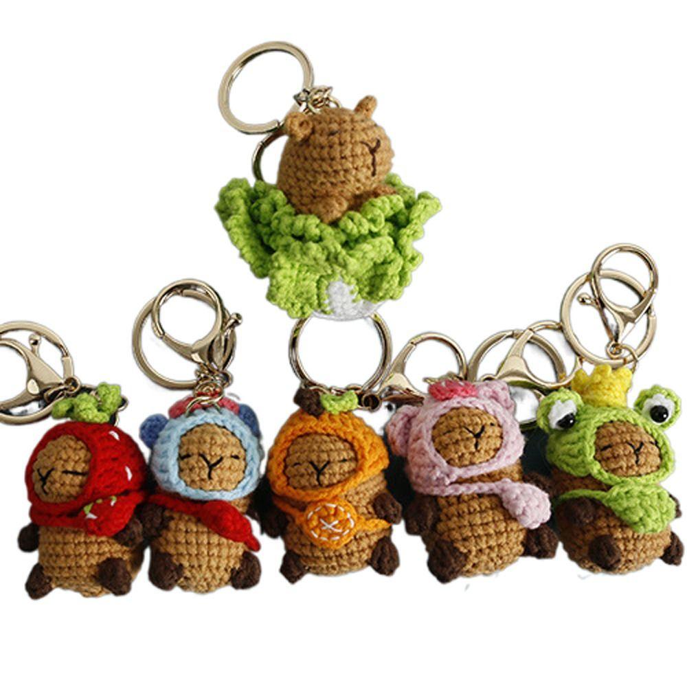 Wool Making Capybara Keychains Kapibala Crochet Keyrings Knitting Capybara Doll Women Girls