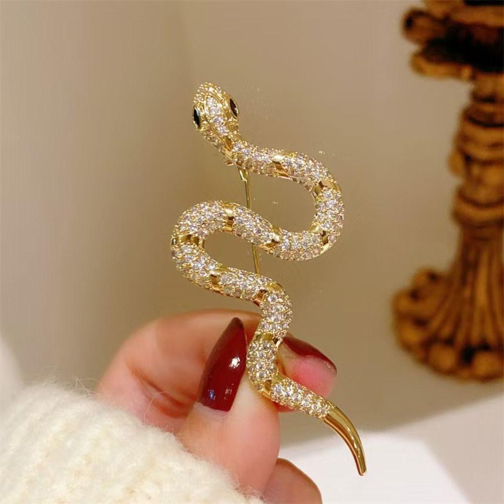 Vintage Zodiac Snake Brooch Sparkling Snake Lapel Pin 3D Rhinestone Animal Collar Pins New Year