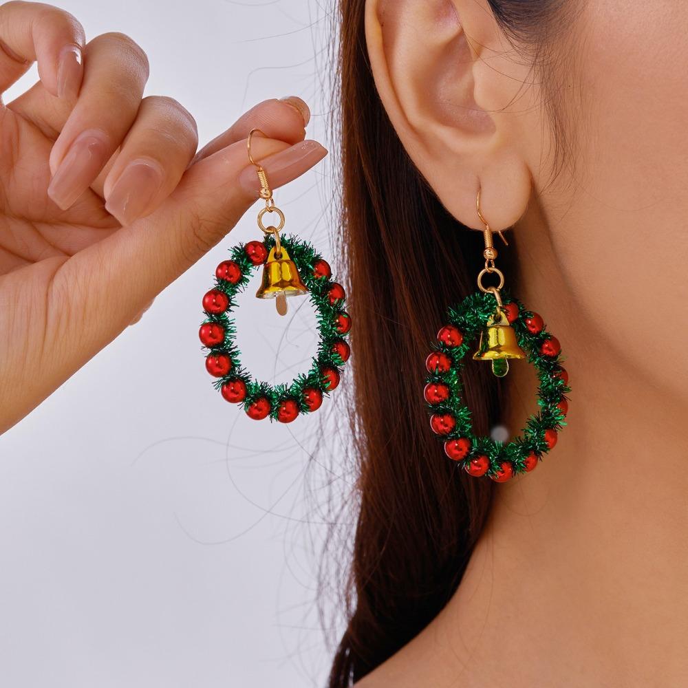 1 пара серег-венков с колокольчиками, серьги-подвески в виде рождественской елки, эстетичные рождественские серьги для девочек