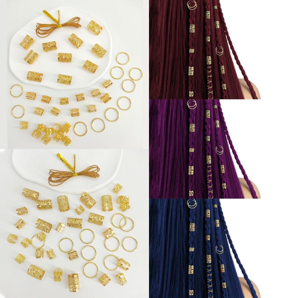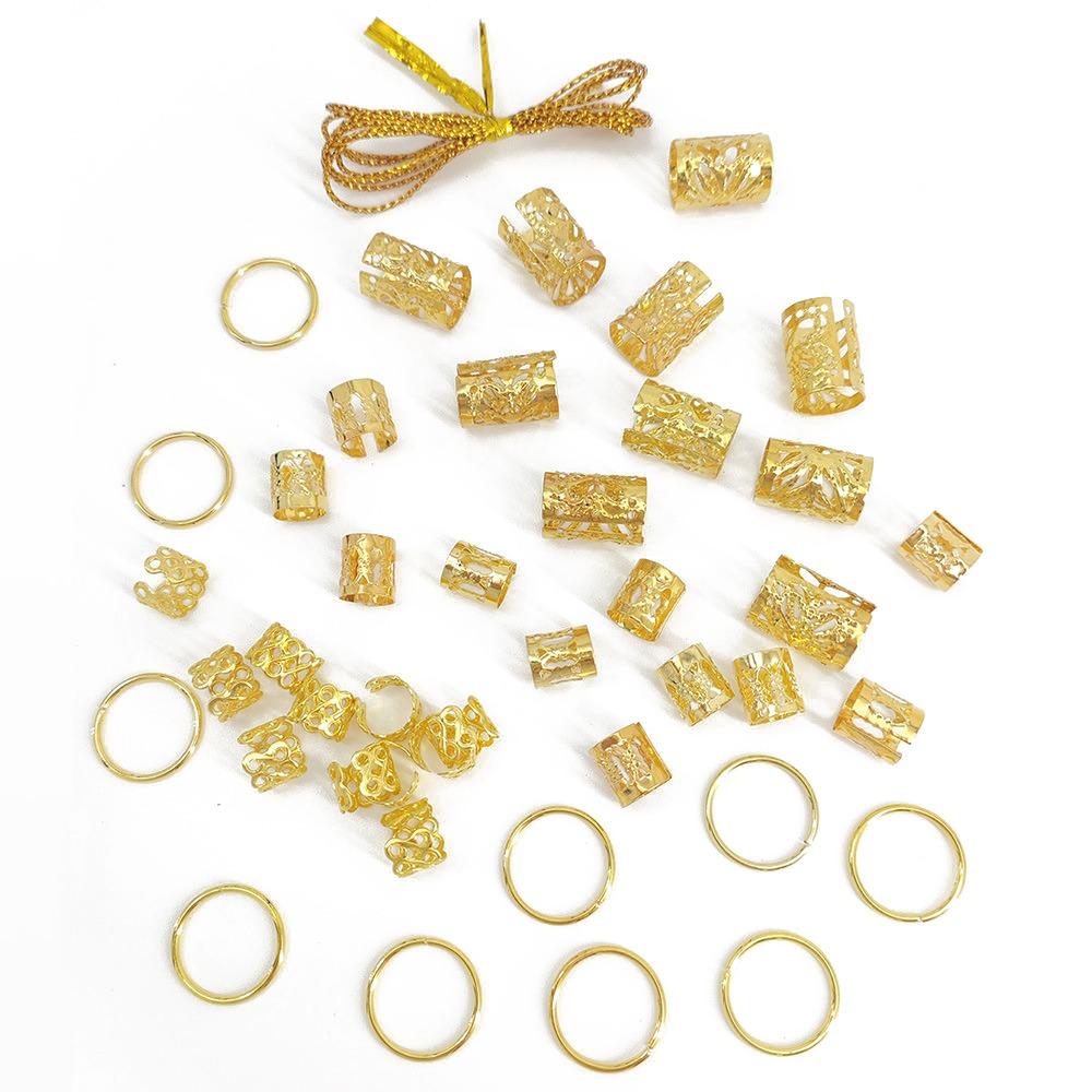 41pcs Metal Cuff Clips Hollow Out Hair Ring Dread Locks Hair Braid Tubes Dreadlocks Beads Men