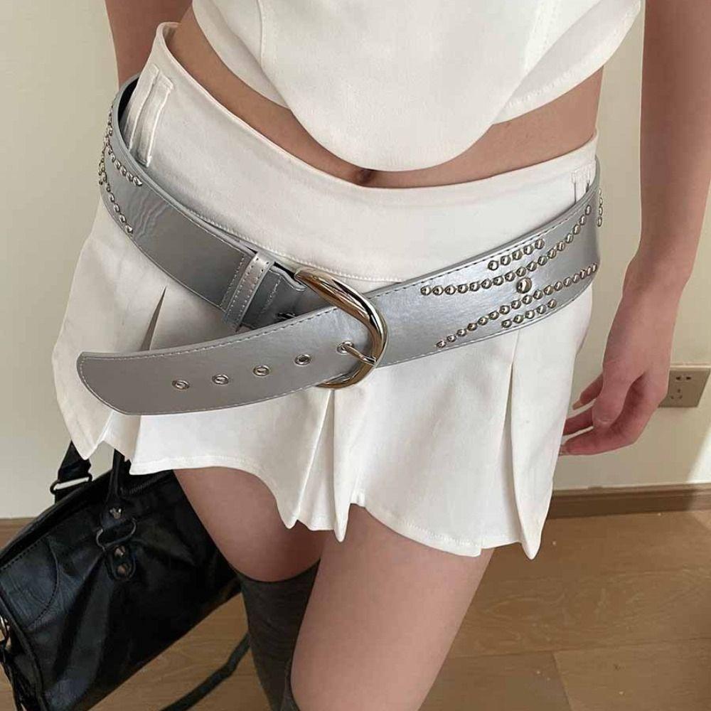 Ремень на талию Y2K с заклепками, пряжка-пин, ПУ кожа, повседневный широкий ремень, для девушки
