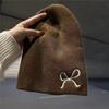 Wool Knit Cap Warm Beanies Cute Embroidery Bow Knitted Hat Girls