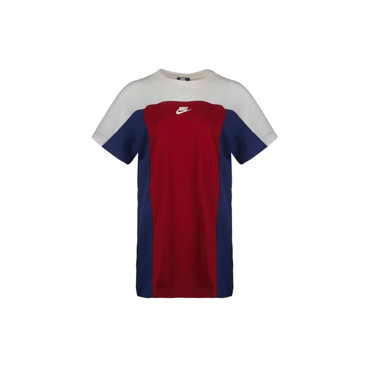 Nike Цветные блоки круглый вырез свободный дышащий короткий рукав платье женские платья бордовый AR2405-677