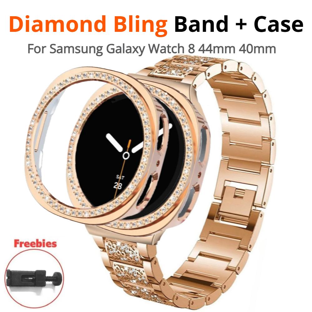 Металлический ремешок для часов со стразами и бриллиантами + защитный чехол из ПК для Samsung Galaxy Watch 8 44 мм 40 мм, деловые часы, ремешок для Galaxy Watch 8 — купить товар онлайн с бесплатной доставкой по всему миру!