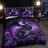 Комплект простыней на резинке с 3D-принтом «Черный дракон и фиолетовые цветы», 100% полиэстер, чехлы для матраса, дышащий комплект постельного белья с 2 наволочками
