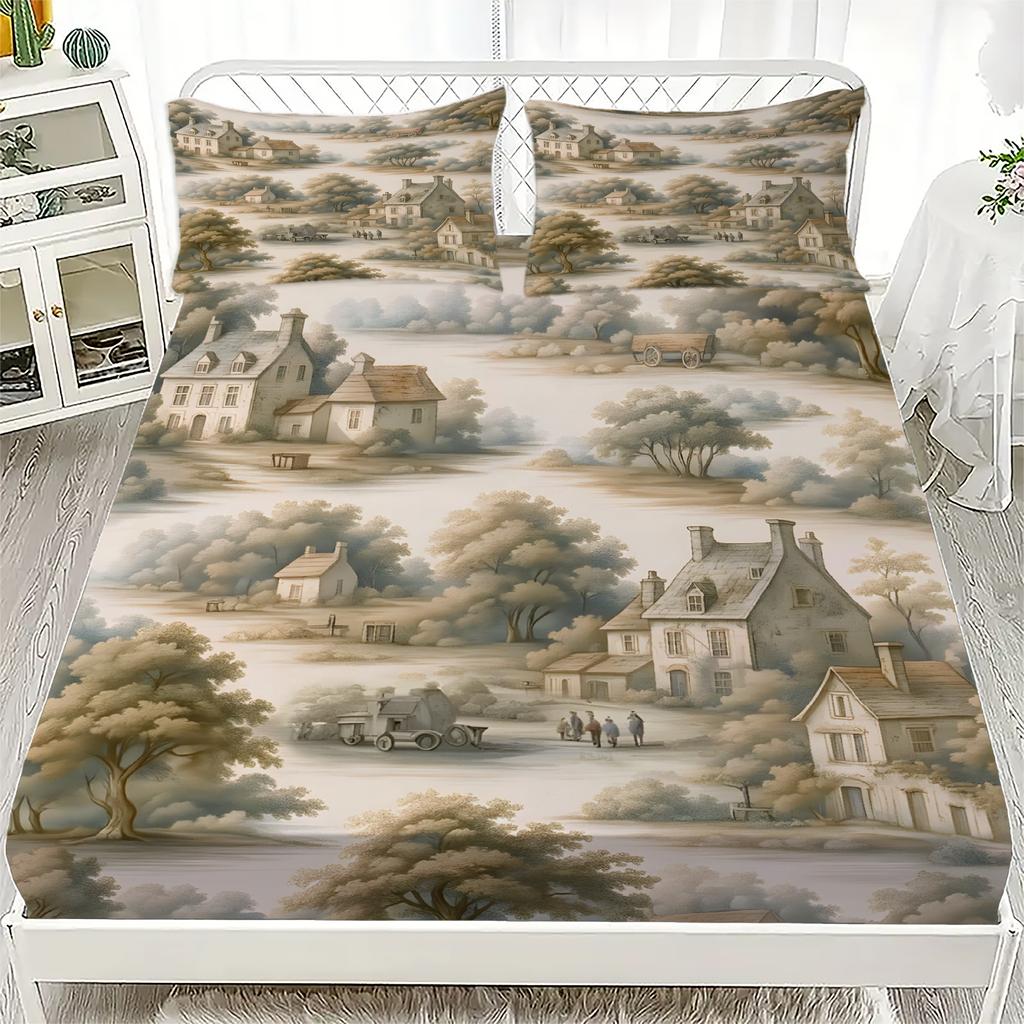 Комплект простыней на резинке с 3D-принтом в стиле китайской классической живописи, 100% микрофибра, чехлы для матраса, дышащий постельный комплект с 2 наволочками