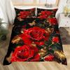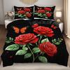 1 шт. Серая простыня на резинке с принтом красных роз, цветов и бабочек, 100% полиэстер, дышащий комплект постельного белья, домашний декор без наволочки