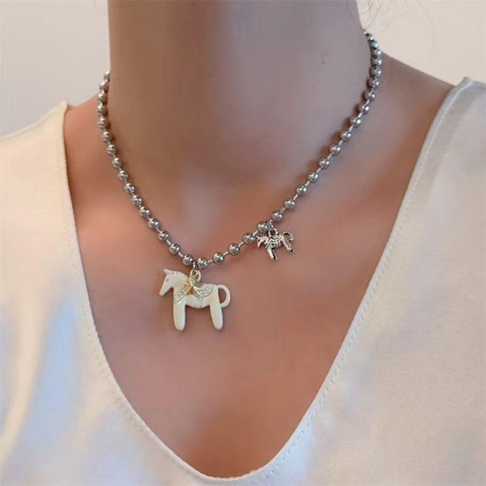 Sweet Enamel Colt Horse Pendant Necklace Cute Cartoon Pony Pendant Necklace Decoration