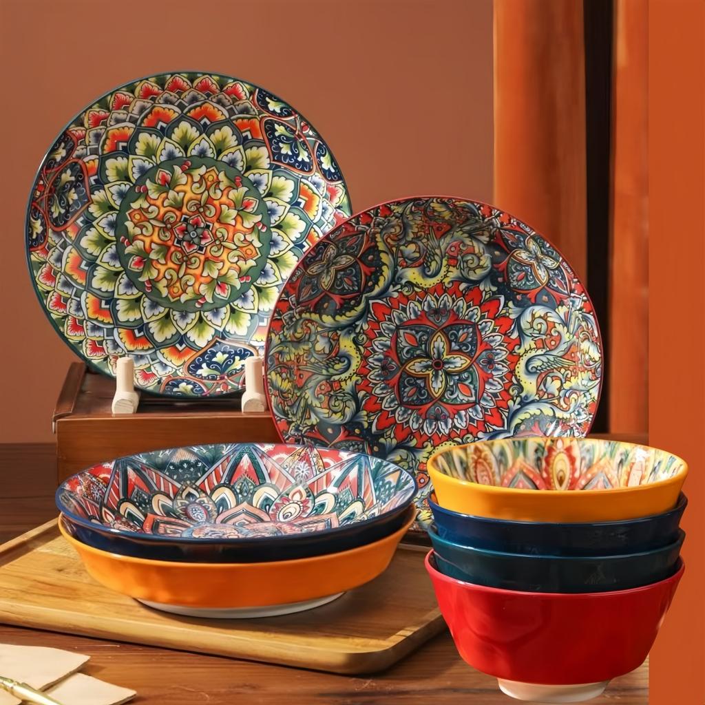 Bohemian ceramic plate 7-piece set cross-border high-value plate household new dessert plate underglazed plate spaghetti bowl — купить товар онлайн с бесплатной доставкой по всему миру!
