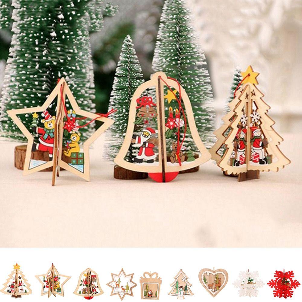 Пентаграмма Счастливого Рождества Деревянная Подвеска 2D/3D Рождественские Деревянные Украшения Детское Украшение
