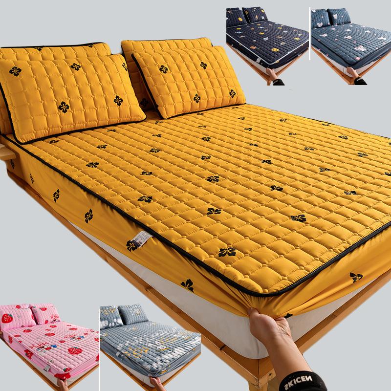 3 шт. Водонепроницаемый наматрасник Толстый стеганый Простыня на резинке Модный принт Постельное белье Простыня с нескользящей поверхностью Пылезащитный чехол Глубокий карман 30 см Комплект простыней