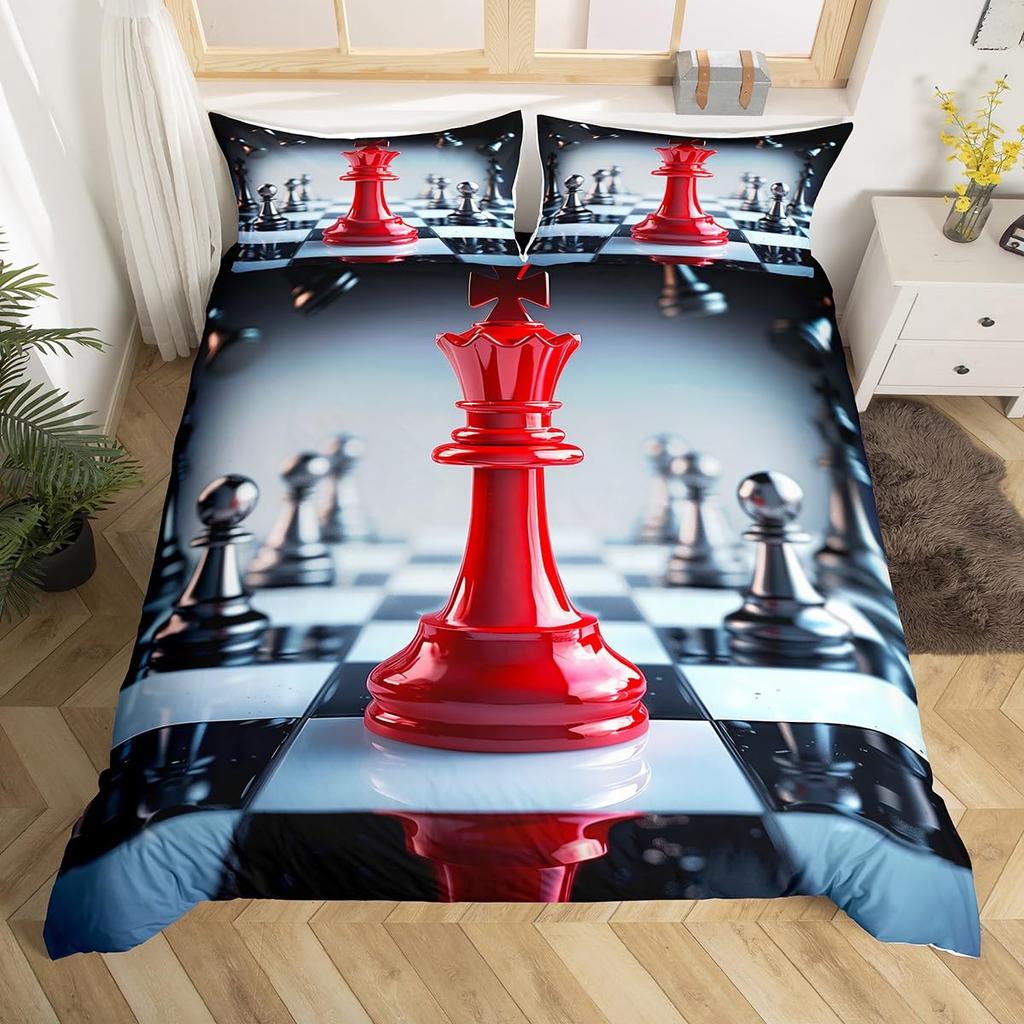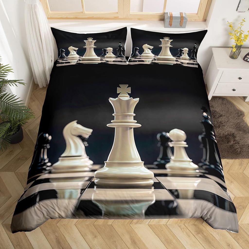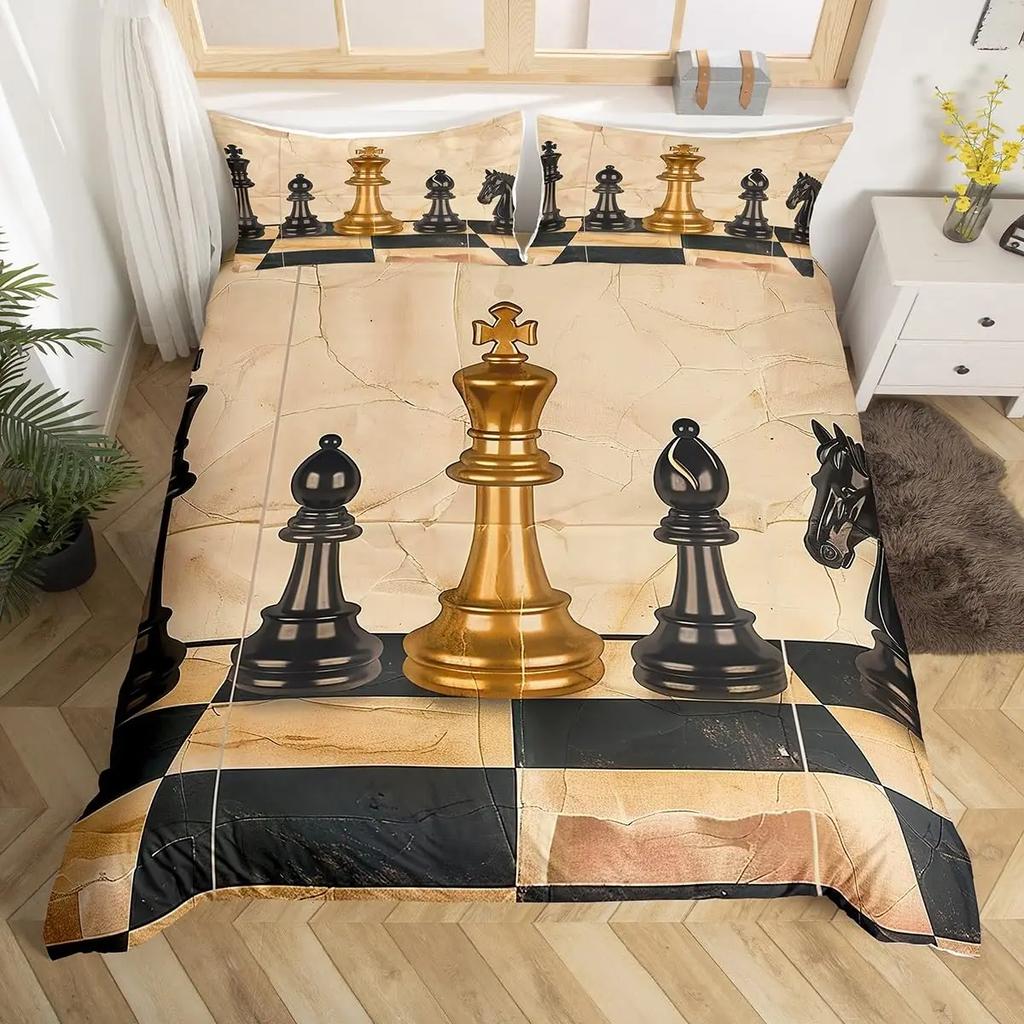 Шахматный пододеяльник в клетку «баффало» Шахматный постельный комплект Спортивные игры Покрывало Шахматная наволочка для одеяла с 2 наволочками