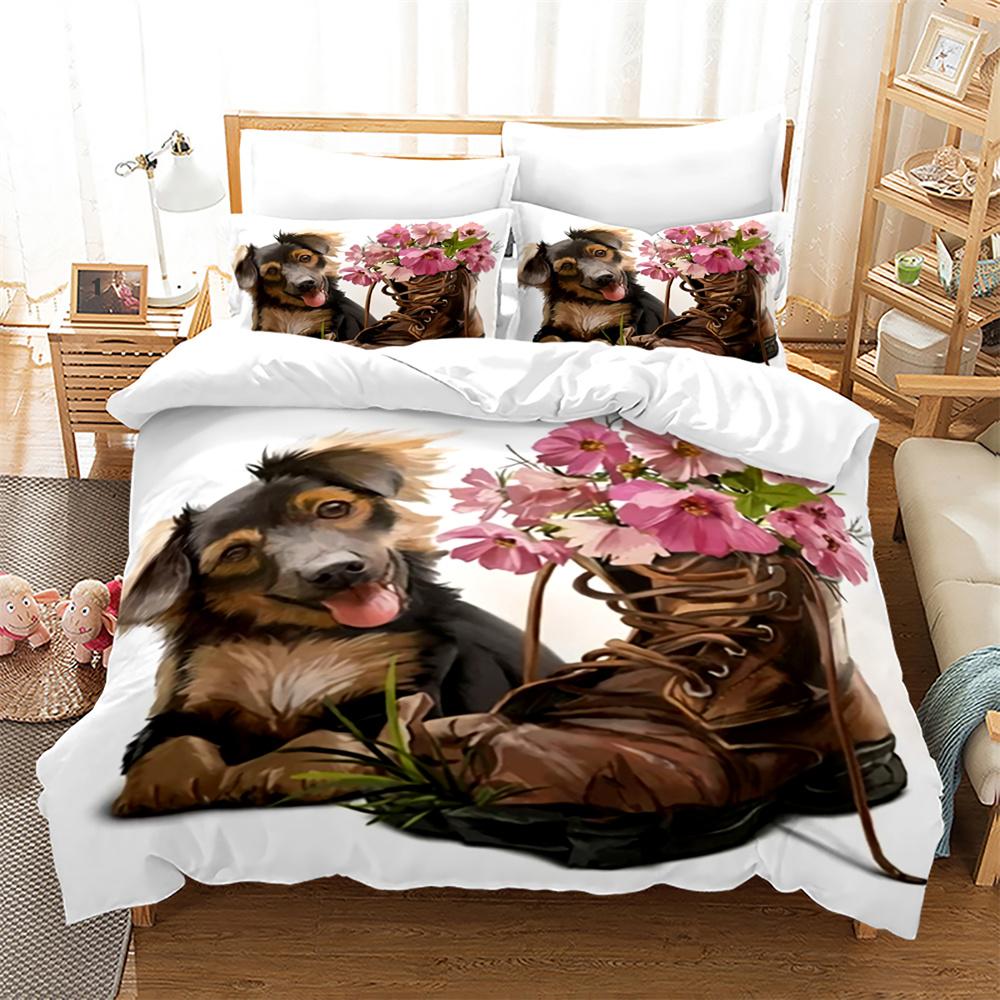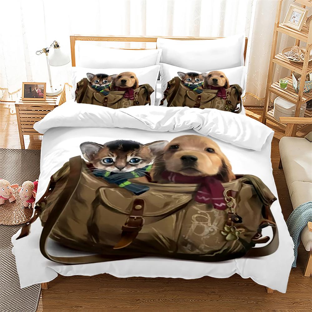 Комплект пододеяльников с 3D-принтом «Собака и кошка», милые кавайные животные, размер кинг/квин, полиэстер, чехол для одеяла для детского постельного комплекта для мальчика/девочки
