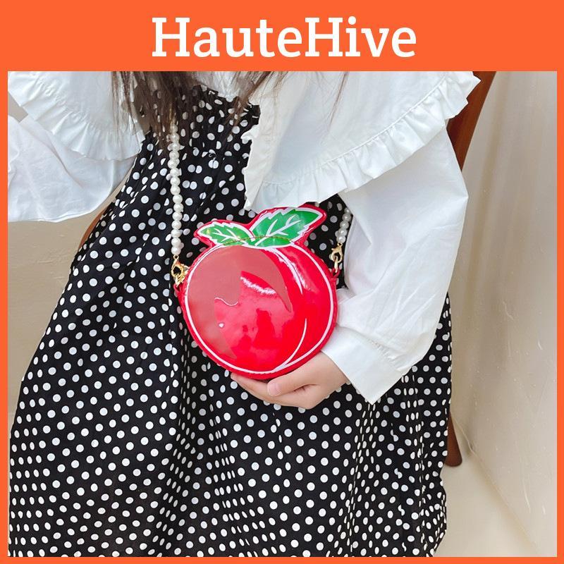Детская сумка на плечо в форме персика, имитация жемчужной цепочки, повседневная сумка через плечо