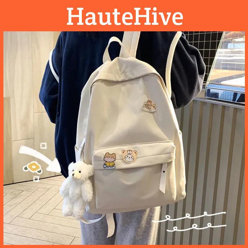 Perfect for after-school activities, weekend workshops, or daily commutes, this backpack enhances convenience with its spacious main compartment and multiple organizational pockets. The neutral design, available in black, white, and blue, complements any outfit, while optional accessories like random badges and bear keychains add a touch of personalization. To maintain its quality, simply wipe the surface with a damp cloth for easy cleaning. Whether for school, travel, or casual outings, this versatile backpack delivers both style and practicality for everyday use.