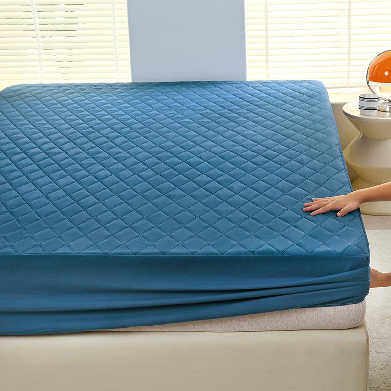 Стеганая водонепроницаемая простыня однотонная нескользящая синяя защита для матраса