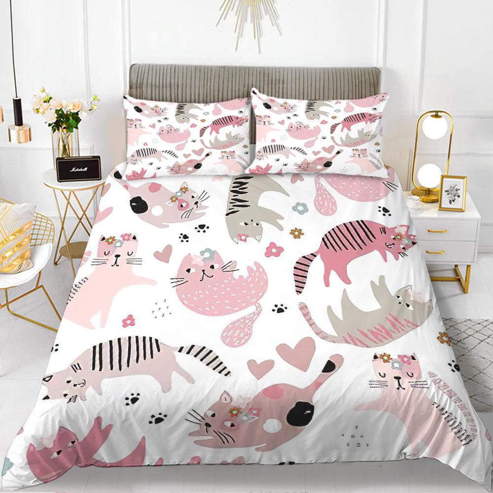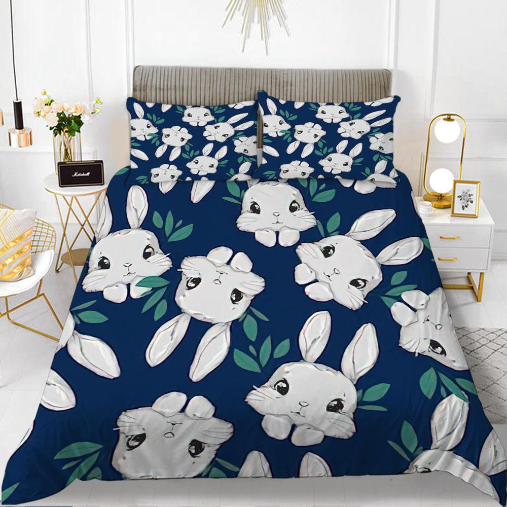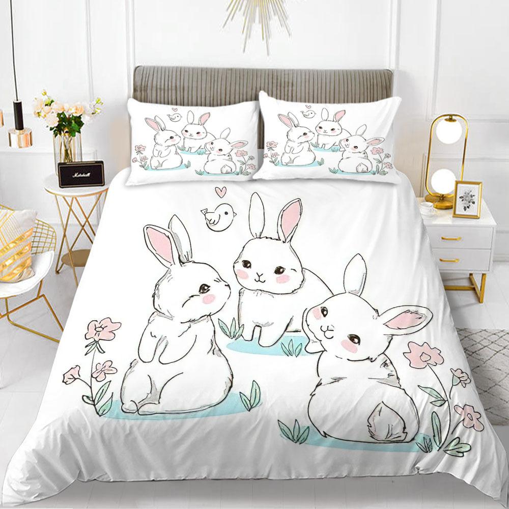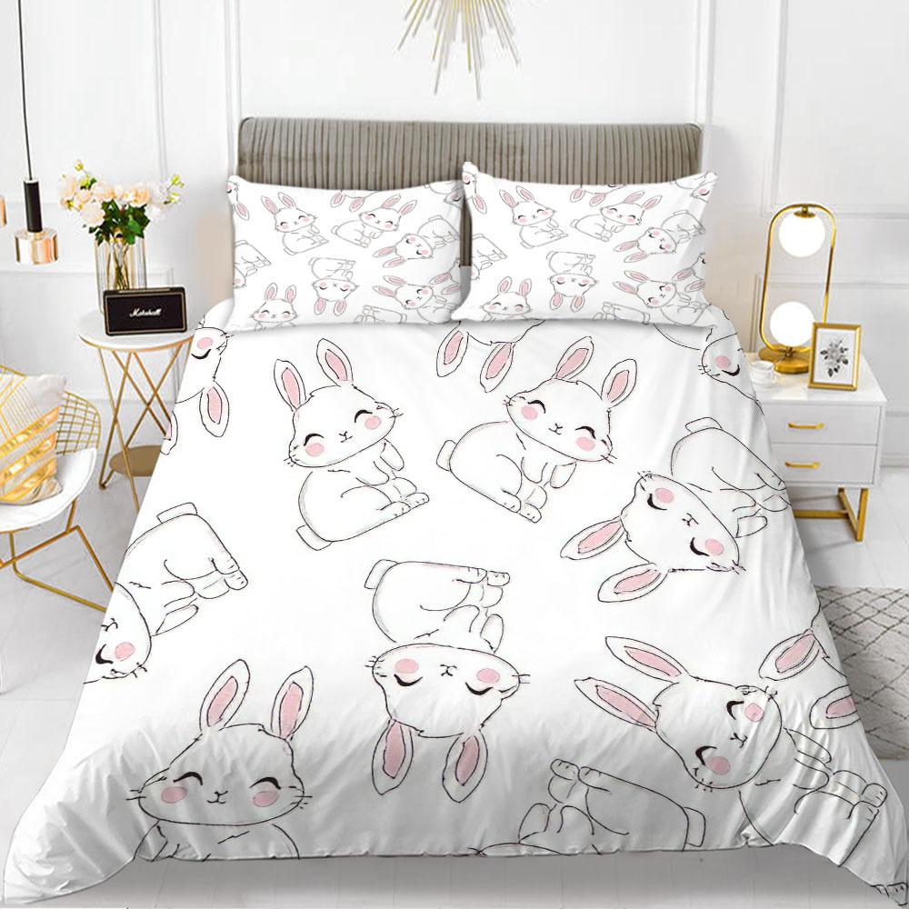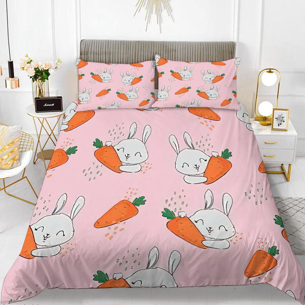 Комплект пододеяльника с кроликами, тема мультяшных животных, 3D-принт, каваий, милый, розовый, размер кинг, квин, для детей, девочек, женщин, полиэстеровый комплект постельного белья