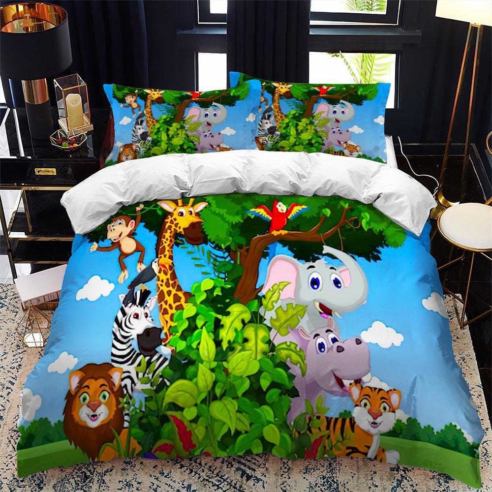 Комплект пододеяльника для зоопарка размера кинг, квин, животные в лесу, мультяшная иллюстрация, лев, панда, для детей, для девочки, для мальчика, полиэстеровый комплект постельного белья