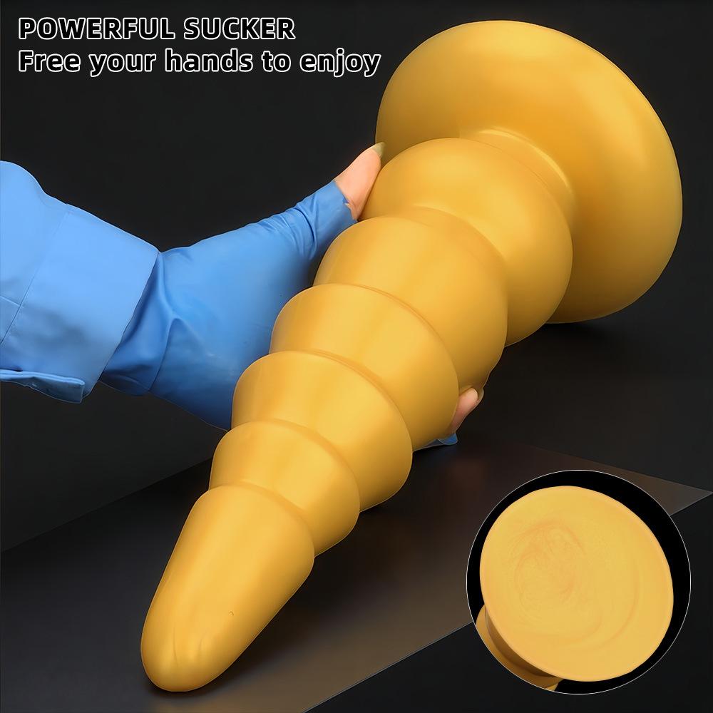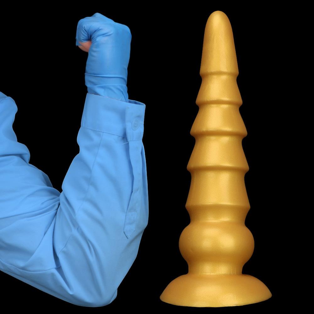 Очень большой золотистый ребристый силиконовый анальный плаг, большой пенис, реалистичный дилдо, игрушка для фистинга, огромный член
