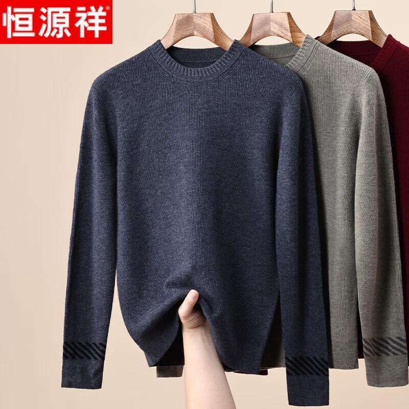 Hengyuanxiang Men's 100% Pure Wool Round Neck Sweater — купить товар онлайн с бесплатной доставкой по всему миру!