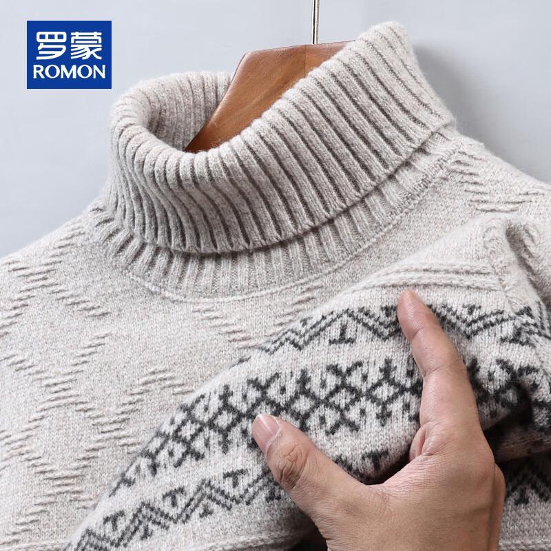ROMON Мужской свитер с высоким воротом из 100% чистой шерсти