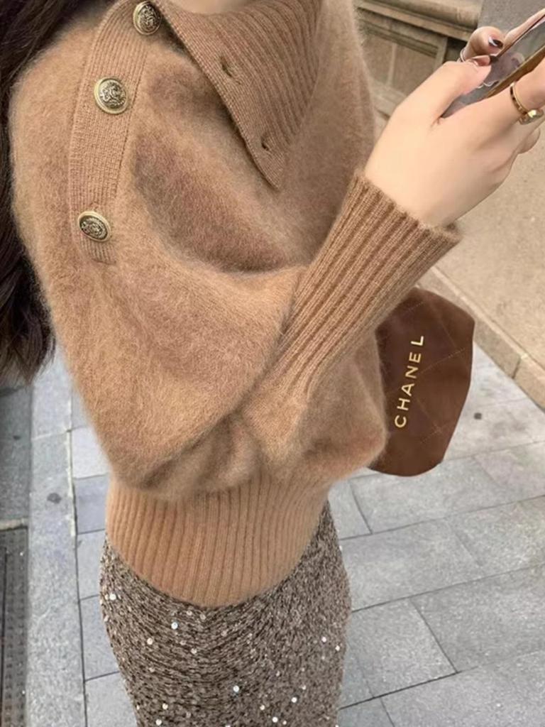 Элегантный мохеровый свитер с высоким воротником класса люкс - Женский зимний трикотаж с длинным рукавом