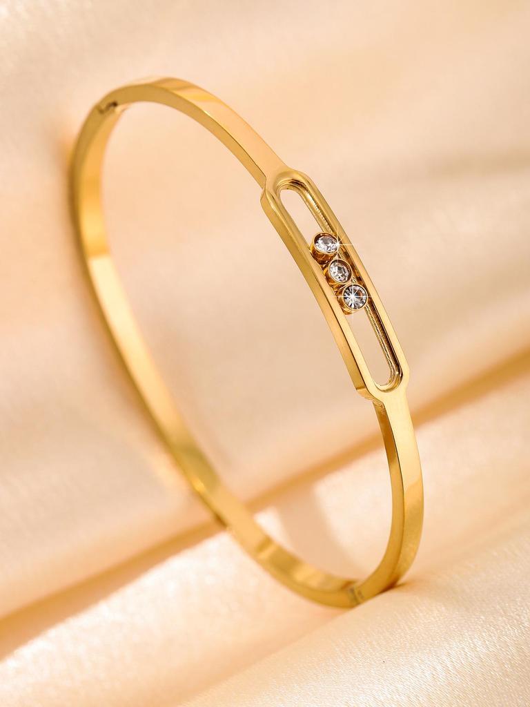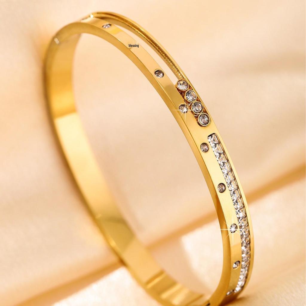Женский браслет с бриллиантами с золотым покрытием - Легкая роскошь, Европейский и американский стиль, Дизайн «Звездное небо», Нержавеющая сталь